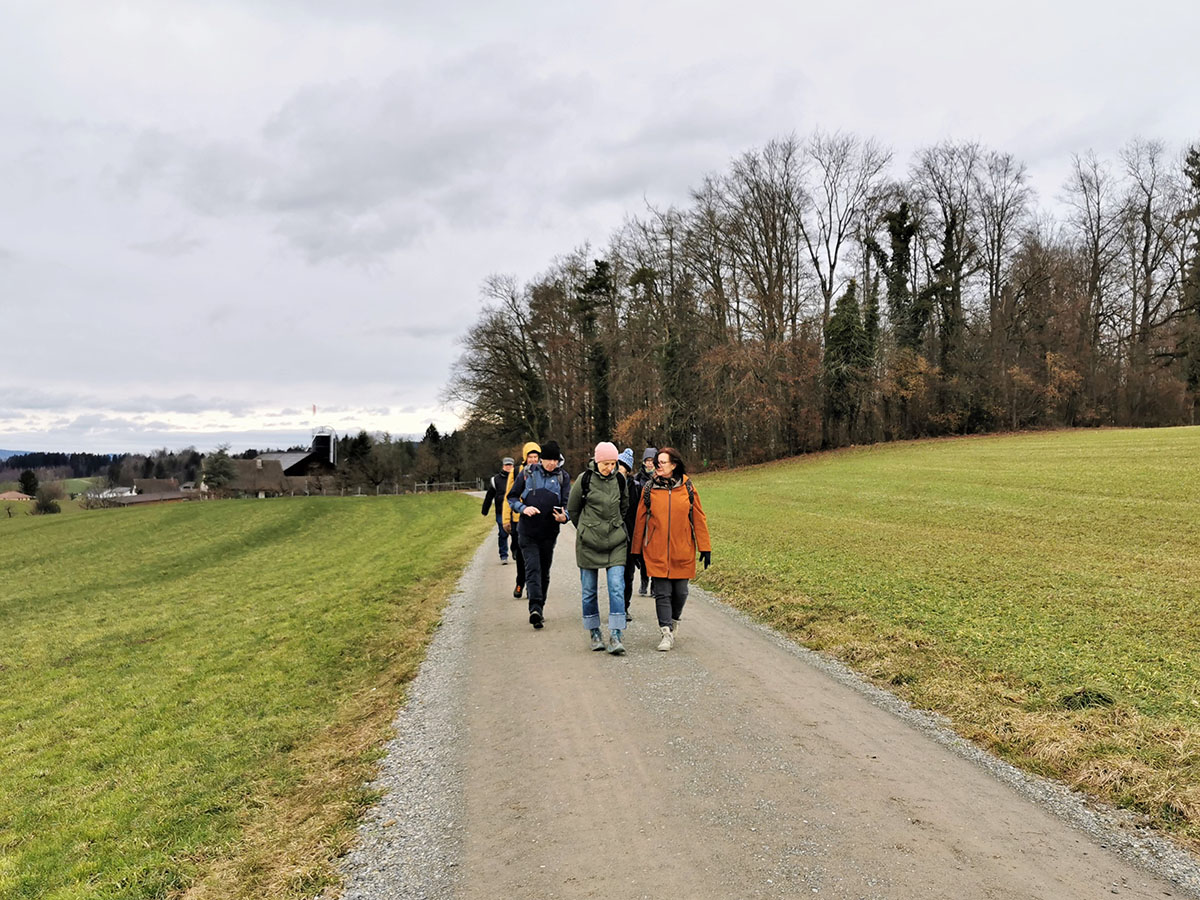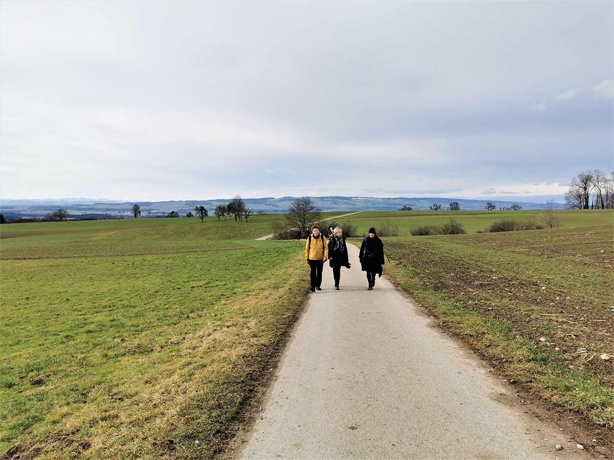 Ein Ort, wo einst Milch und Blut flossen, sowie ein reformiertes Kloster säumten die Route unserer Tour vom Knonaueramt ins Zugerland: Wir wanderten von Mettmenstetten über Kappel und Ebertswil nach Baar. Entgegen der ursprünglichen Planun verliessen wir in Wissenbach die SchweizMobil-Route „Knonaueramtweg“, um stattdessen via Hauptikon nach Kappel zu marschieren (die improvisierte Anpassung war nur natürlich, denn es geht ja um Haupt-Sachen). Beim Milchsuppenstein waren alle vom scharfen Westwind so durchgefroren, dass Staeger auf sein Grundsatzreferat über diese Schlüsselstätte der Schweizer Geschichte verzichtete.