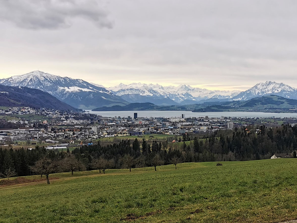 Beim Milchsuppenstein lag uns der Zugersee zu Füssen (dahinter Rigi und Pilatus)