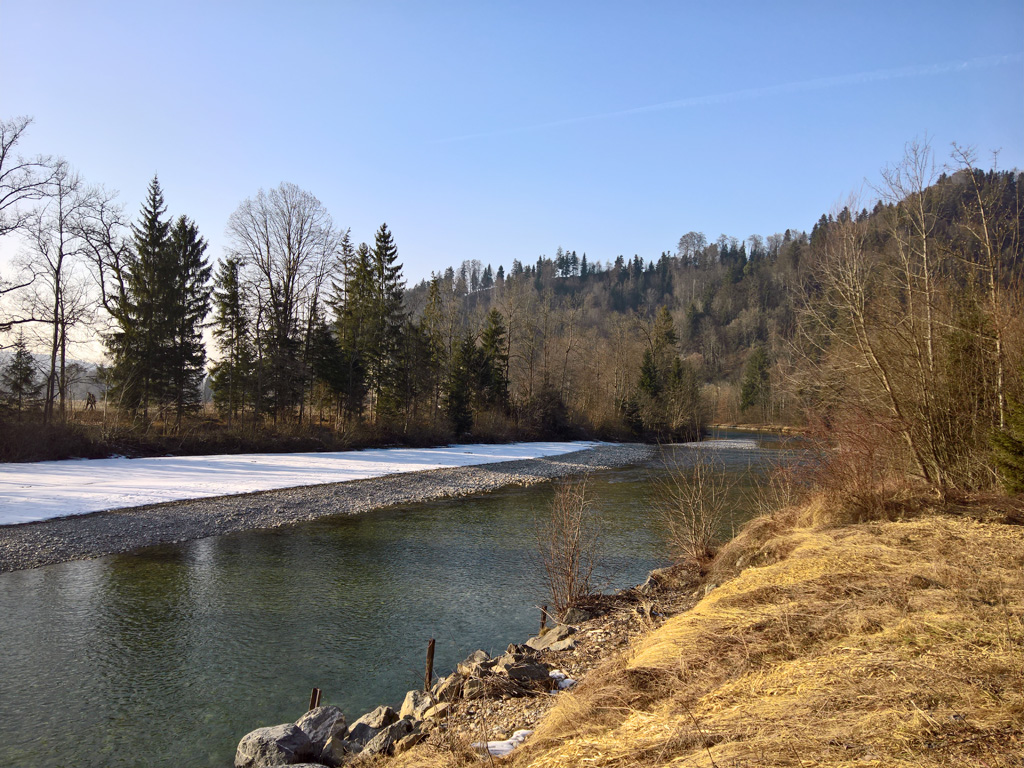 Alsbald erreichten wir das Ziel und Thema des heutigen Wandertags – die Emme. Ach Quatsch, das Thema lag woanders, jedenfalls für Stefan. Kaum hatten wir den Auenwald erreicht, holte er sein Taschenorakel hervor und begann es nach den Ergebnissen der Volksabstimmung zu befragen. Die Resultate waren anfänglich natürlich völlig nichtssagend und entsprechend bedeutungslos. Was sagt es denn schon über den Zustand der Welt aus, wenn die Sonne aufgeht, die Steuerrechnung im Briefkasten liegt oder Appenzell Innerrhoden Nein sagt? Ungefähr dies: Alles läuft völlig normal.