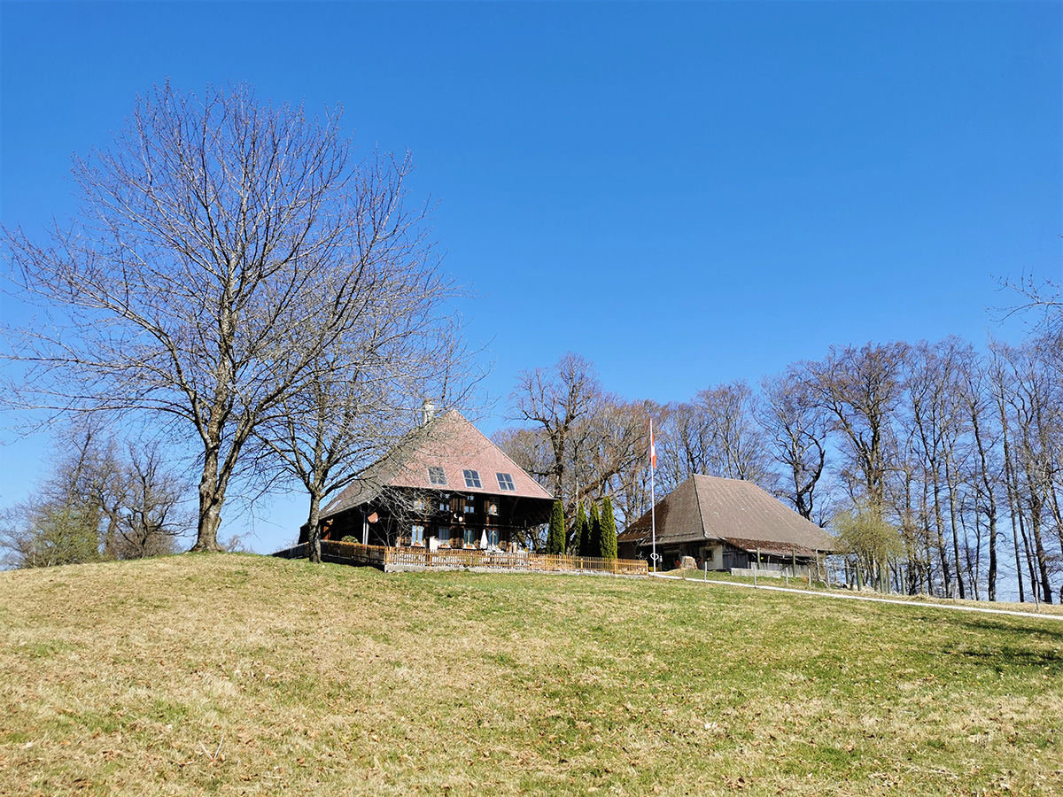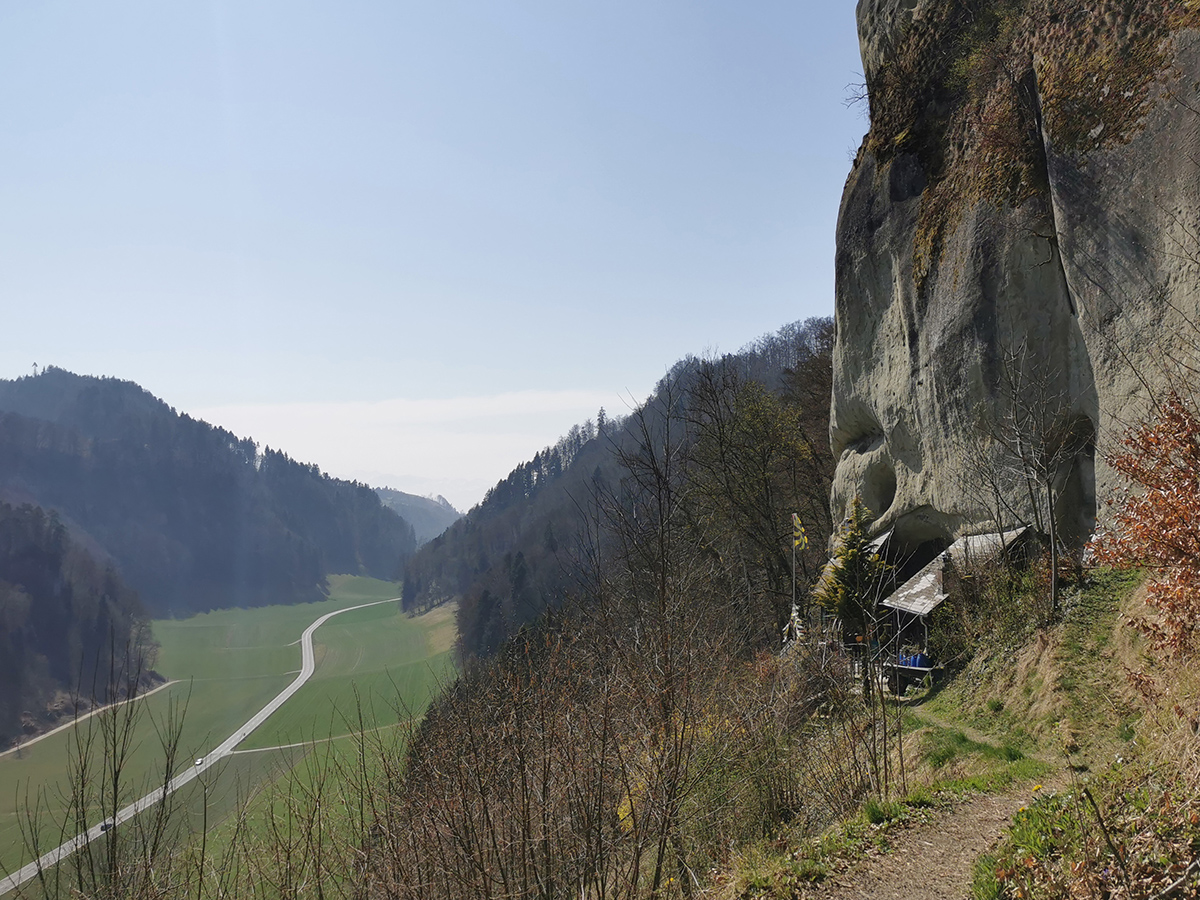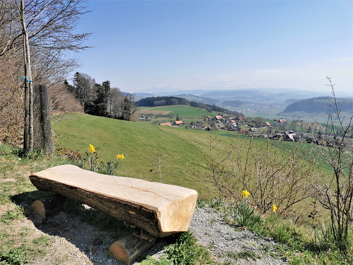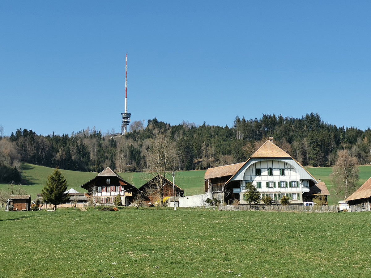 Als „Haupthügel“ wird der Bantiger auf der Landeskarte bezeichnet. Am 27. März 2022 war er unser Ziel. Oben steht eine ziemlich hohe Rundfunkantenne mit einer öffentlich zugänglichen Aussichtsplattform. Mehr noch als das Panorama dort oben beschäftigten uns einige Kuriositäten auf dem Weg zum Gipfel. Dazu zählten zwei Wohngelegenheiten, die uns, ganz ehrlich gesagt, nicht wahnsinnig anheimelten, nämlich das Zuchthaus auf dem Thorberg und die Behausungen namens Fluehüsli, die in eine Sandsteinfluh gehauen sind. Mehr noch beschäftigte uns das Fluebabi, eine gut sieben Meter hohe Sandsteinskulptur. Im Internet wird die skurrile Behauptung verbreitet, sie sei keine Laune der Natur, sondern das Werk von „gelangweilten Steinmetzen“ (also von Leuten, die im Mittelalter den ganzen Tag von Hand Steine bearbeiteten, um dann am Feierabend total angeödet weiterhin von Hand Steine zu bearbeiten, statt ein Bier zu trinken).