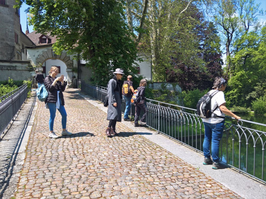 High-Noon? Allwäg! Am anderen Ende des Kräiligenstegs erwartet Nachzüglerin Evi die Kerngruppe der Aaronauten, die nicht vom Ortsbus Zollikofen sitzen gelassen wurden.