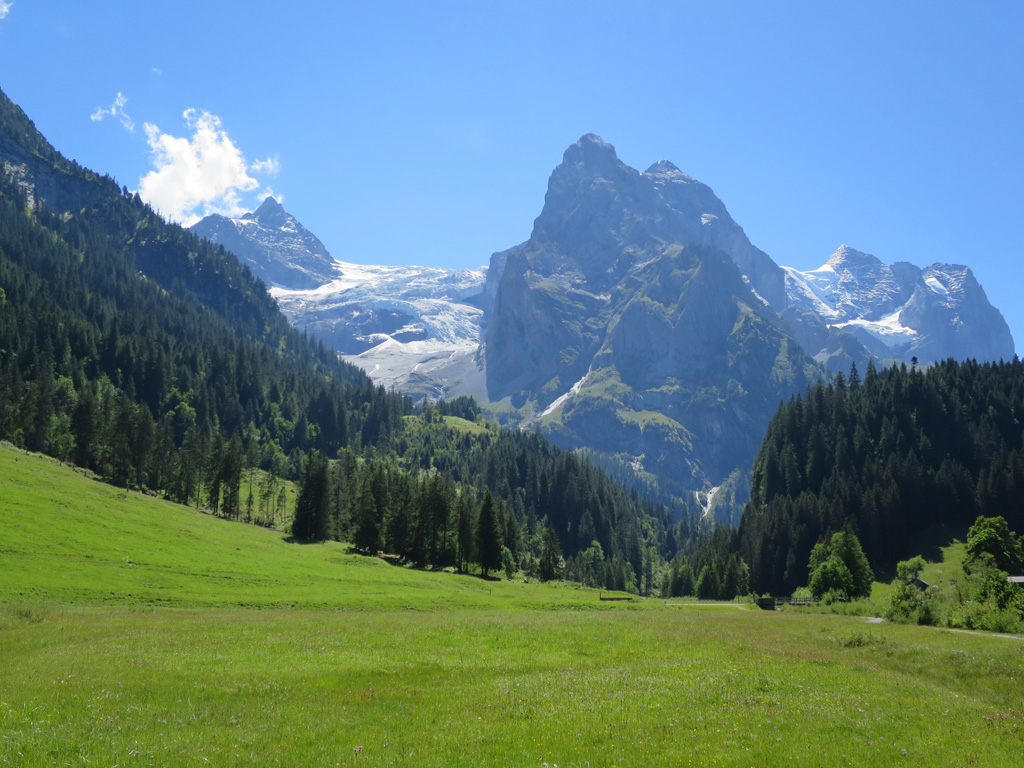 Es geht aber auch anders, und dafür gibt es ebenfalls triftige Gründe. Da Sommerhitze herrschte, gedachten wir in der Kühle zu beginnen und unnötige Anstrengungen zu vermeiden. Zudem beabsichtigten wir die Engelhörner nicht bloss mit dem Blick zu streifen, sondern recht tüchtig ins Auge zu fassen. Und zu guter Letzt wollten wir den Reichenbach erleben, wie er sich vom schmächtigen Bächlein zum tosenden Wasserfall entwickelt. Also entschlossen wir uns, die Rosenlaui gleichsam gegen den Strich zu bürsten.