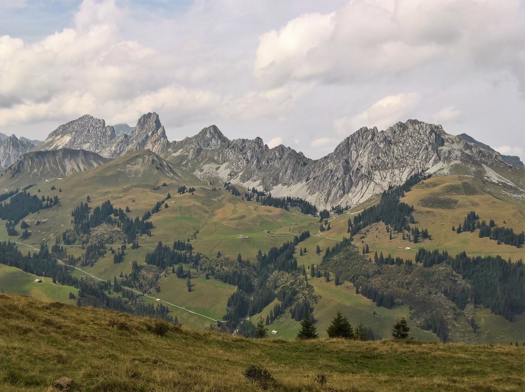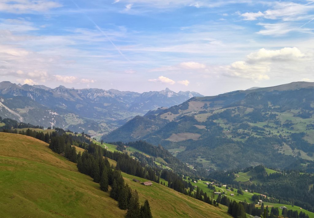 Viel Aussicht gab es heute, sogar nach hinten: Wenn man sich umdrehte, überblickte man den von der Stockhornkette flankierten unteren Teil des Simmentals.