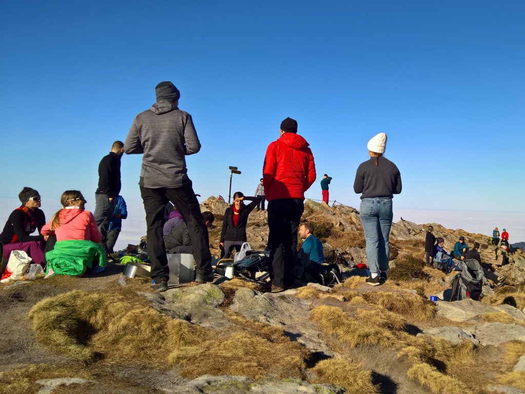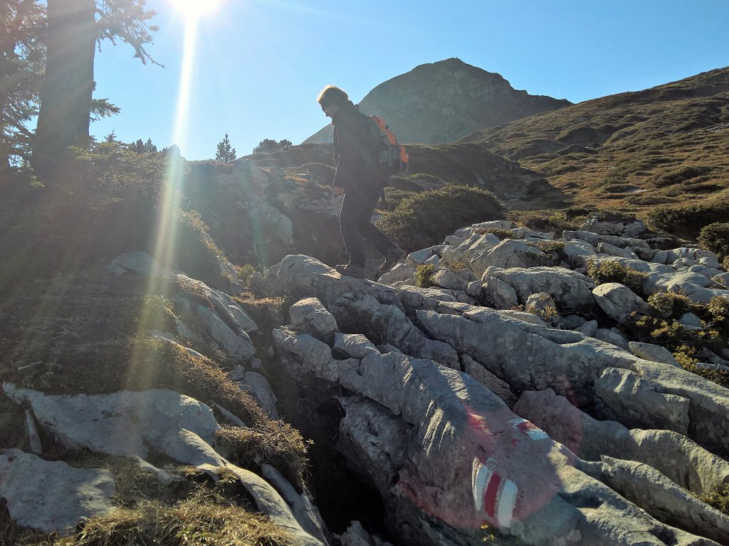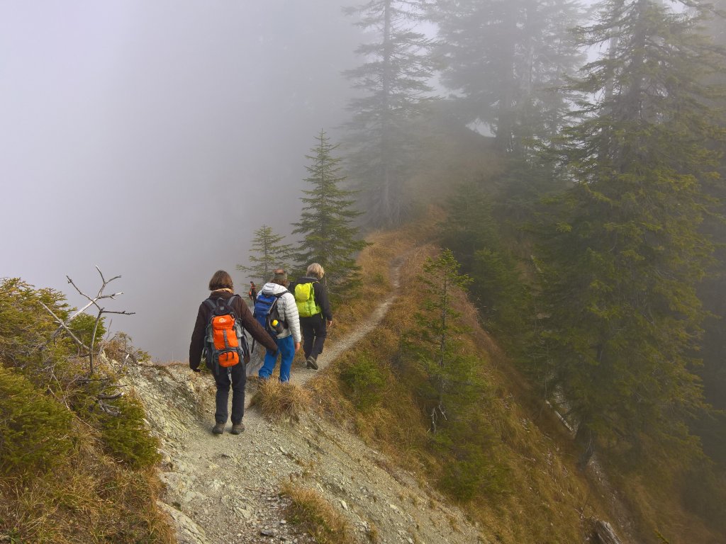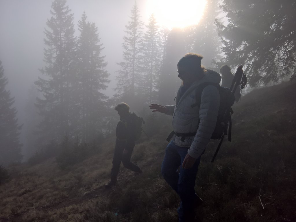 Es war ohnehin trocken, nicht nur wegen des monatelangen Regenmangels, sondern auch, weil wir Karstgelände durchquerten, in dem jegliches Regenwasser sogleich von der Erde verschlungen wird. Die einzige Form von Wasser, der wir begegneten, war die Nebeldecke, die über den Tälern zu unseren Füssen lag und in die wir am Schluss der Tour schliesslich selber eintauchten.