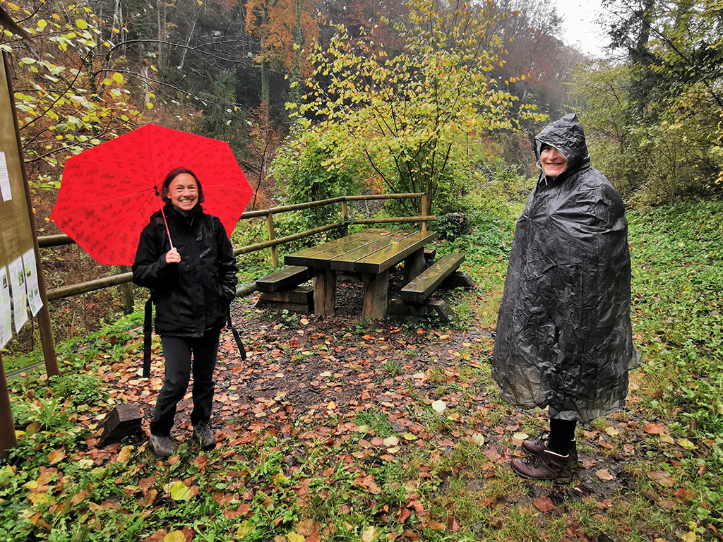 «Jedes Wetter ist schön» – diesen wunderbaren Satz schrieb Marianne, als sie am frühen Morgen vorsichtig anfragte, ob die Wanderung denn nun wirklich stattfinde. Die Wetterprognosen hatten in den zurückliegenden 48 Stunden einen wahren Höllensturz erlebt. Statt der anfänglich gemeldeten einigermassen trockenen Verhältnisse mit Aufhellungen verkündeten die Meteorologen nun Dauerregen, der gar zu Schnee ausarten könne.