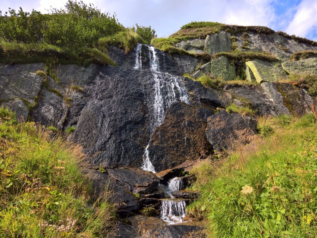 Doch dann nahm die Umgebung zusehends natürliche Züge an. Ein letzter Höhepunkt an Synthetik stand allerdings noch bevor. Majestätisch fliessen die Wassermassen des Juchli-Bachs über die Felsen in den Stausee. Der Bach ist im Grunde eine totale Fälschung, denn er sprudelt ein paar hundert Höhenmeter weiter oben mir nichts, dir nichts aus dem Berg. Das Wasser stammt aus dem Bächlital auf der anderen Seite des Bergkamms. Dort wird es in einem kleinen See gefasst und durch einen Stollen unter dem Juchlistock hindurchgeführt, um den Grimselsee zu speisen. Doch selbst der Bächlibach (was für ein kurioser Name…) ist «Fake», denn einer seiner Zuflüsse stammt nochmals aus einem anderen Tal: Das Wasser wird vom fernen Gruebensee durch einen Stollen unterhalb des Alplistocks zugeführt.