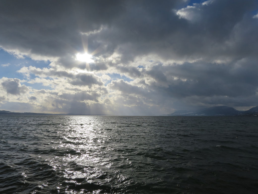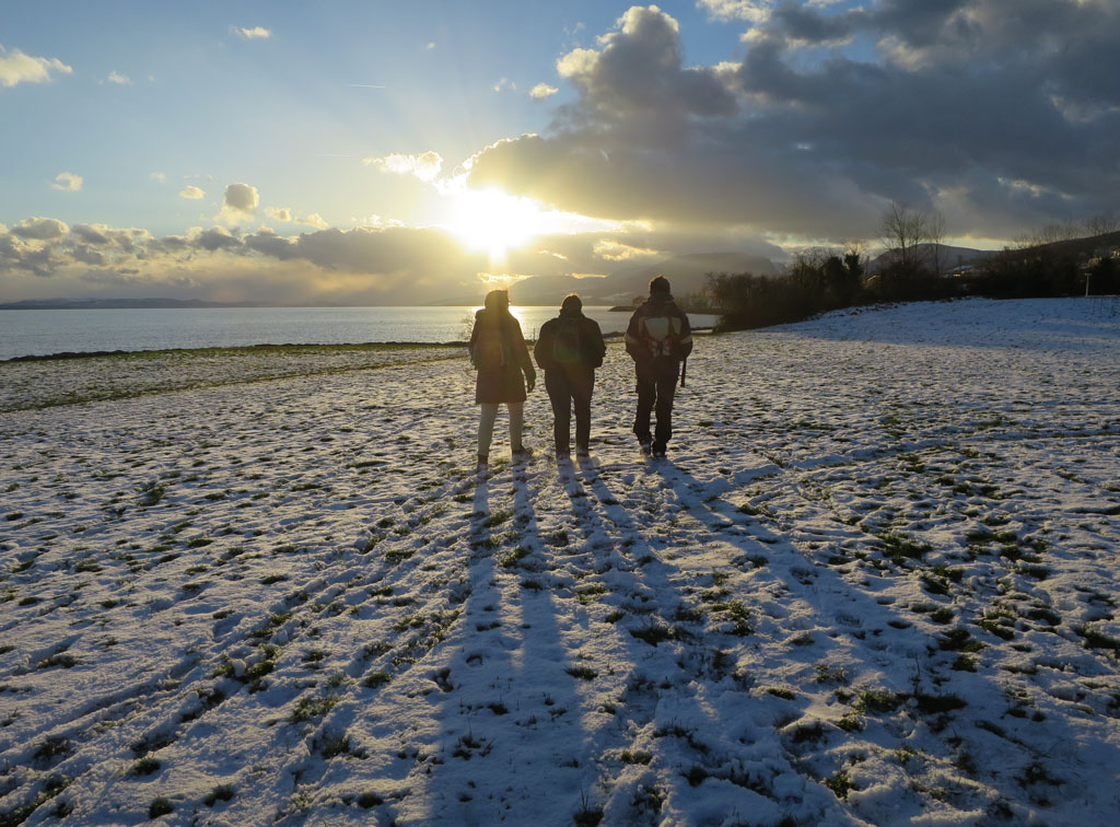 Aber falls sie tatsächlich einen Plan hatte, funktionierte er irgendwie nicht, denn mittlerweile hatten sich draussen die Schneewolken verzogen, und der betörend schöne Anblick des Neuenburgersees, der sich hier weit wie ein Meer in die Ferne erstreckt, riss uns mit unwiderstehlicher Kraft von den Sofas, auf denen wir herumfläzten, ins Freie hinaus.
