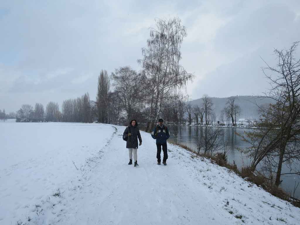 Am 17. Januar trotzte ein kleiner Trupp von Aaronauten dem Schnee und der Kälte, um einen ersten dieser Aare-Zuflüsse zu erkunden. Im Hinblick auf das überraschend winterliche Winterwetter (in den vorangegangenen zwei Monaten hatte sich der Winter eher als Filiale des Herbstes präsentiert) war die Wahl auf den Zihlkanal gefallen. Dieser verbindet den Neuenburger- mit dem Bielersee und ist meist ein unspektakulärer Wasserarm, an dem sich recht angenehm wandern lässt (wenn man die Friteuseschwaden der nahen Ölraffinerie ausser Acht lässt).